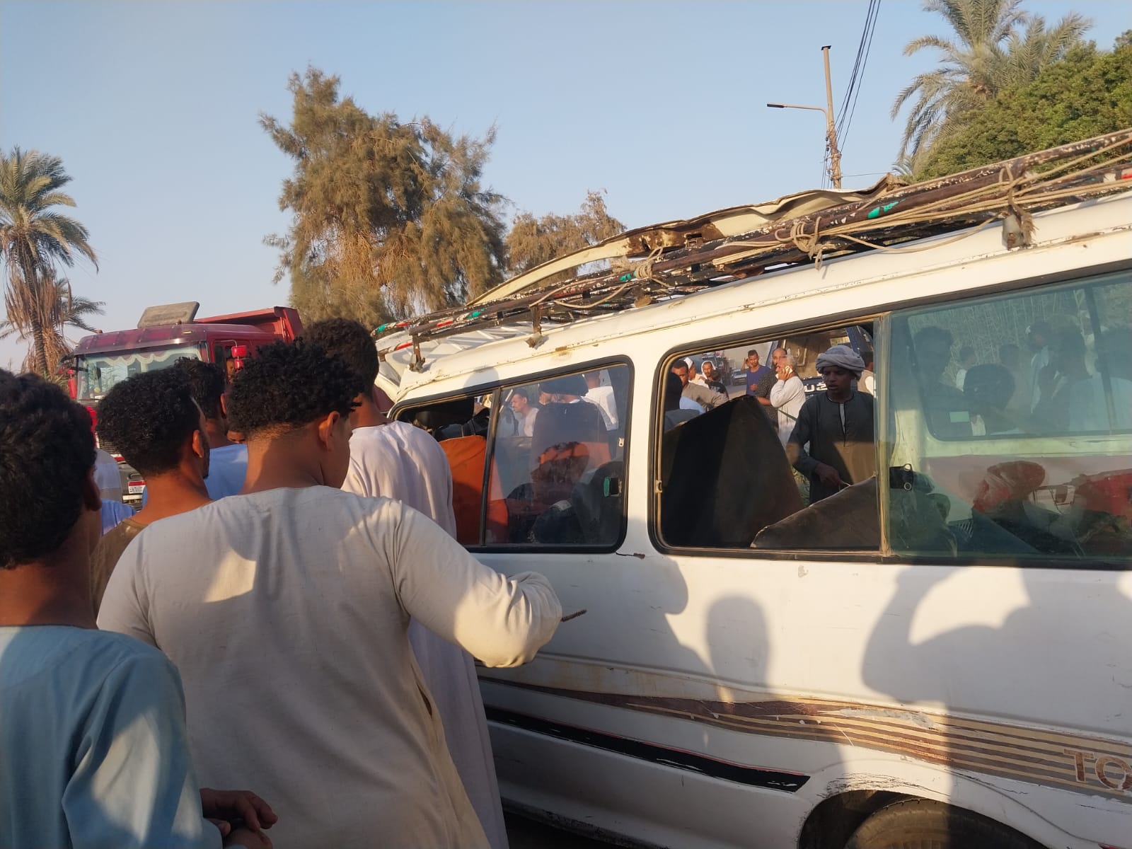 بالأسماء.. إصابة 15 عاملًا في انقلاب سيارة على الطريق الصحراوي بأسوان