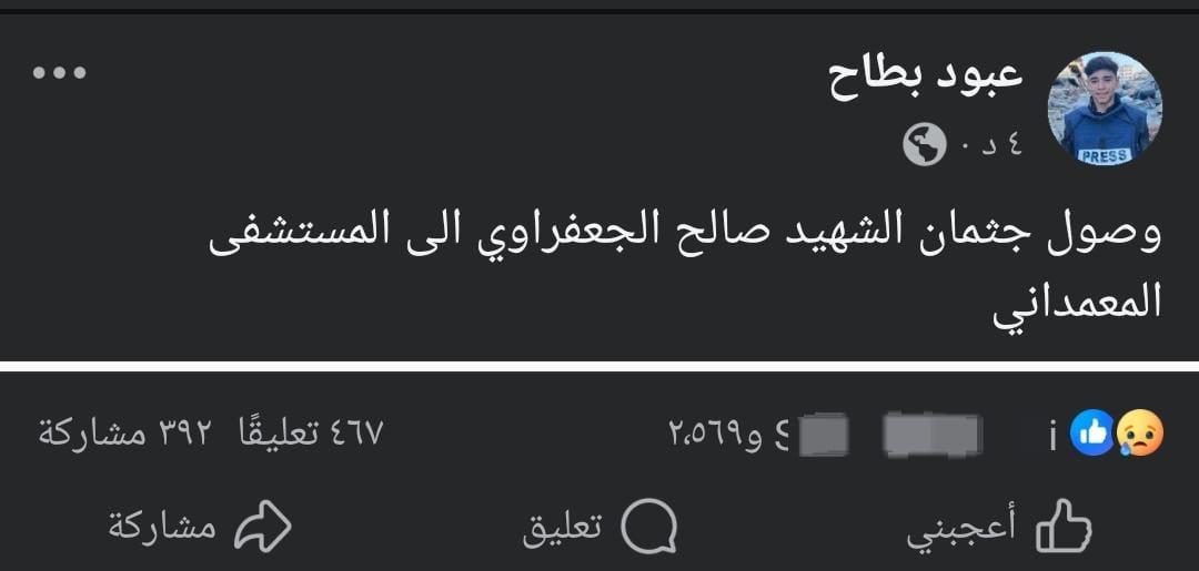 مصادر: استشهاد الصحفي الفلسطيني صالح الجعفراوي