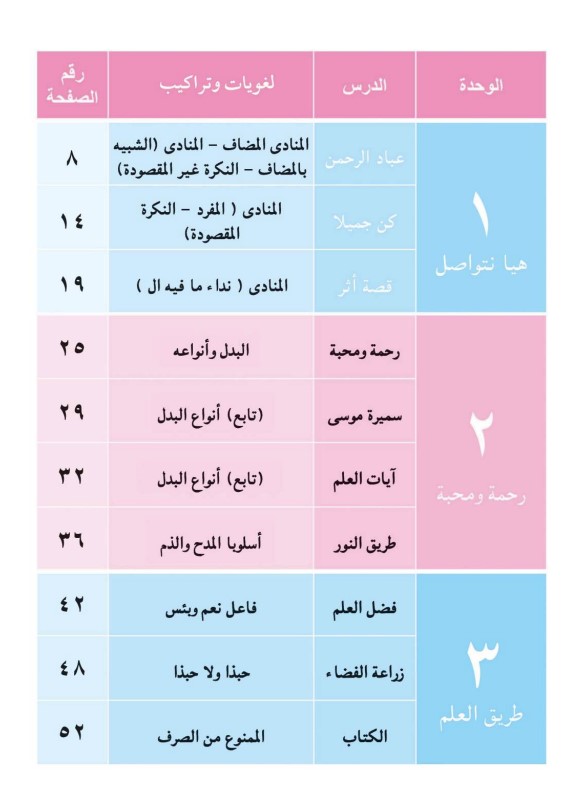 يحتوي منهج اللغة العربية للصف الثالث الإعدادي على 3 وحدات رئيسية، تركز كل وحدة على عدد من الدروس والقواعد النحوية واللغوية، التي تهدف إلى تنمية اللغة الأم لدى الطلاب، ونستعرض معكم المنهج من خلال الصورة التالية: