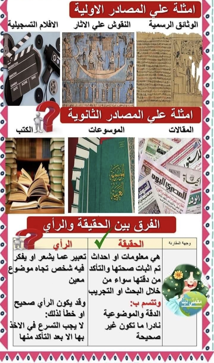 شرح درس المصادر الأولية والثانوية للصف الرابع الابتدائي المنهج الجديد