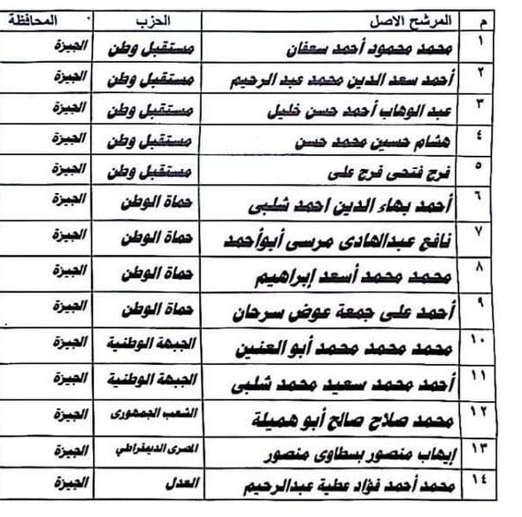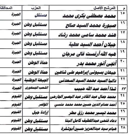 القائمة المبدئية لمرشحي انتخابات مجلس النواب 2025