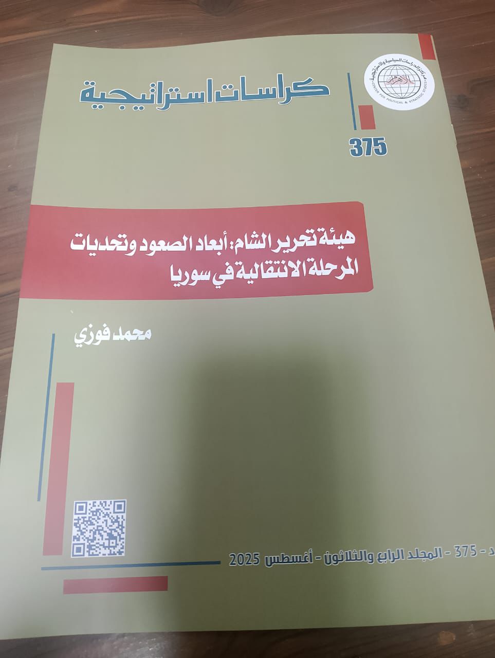 صدرت عن مركز الأهرام للدراسات السياسية والاستراتيجية دراسة تفصيلية للباحث في شؤون الأمن الإقليمي محمد فوزي، تتناول تحليلًا عميقًا للمرحلة الانتقالية في سوريا التي تلت الإطاحة بالنظام السابق.