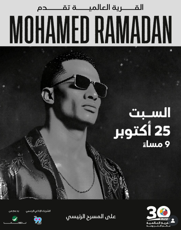 ونشرت إدارة المهرجان “بوستر” تشويقيًا للحفل عبر حسابها الرسمي بمنصة “إنستجرام”، وعلقت عليه: “الأسطورة في القرية العالمية، استعدوا لانطلاقة رائعة لحفلات القرية العالمية في الموسم الـ30 مع النجم محمد رمضان على المسرح الرئيسي يوم السبت 25 أكتوبر الساعة 9 مساءً”.