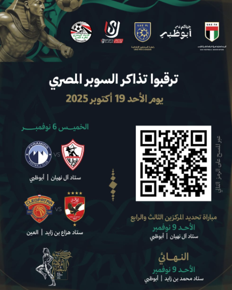 أما المباراة النهائية، فستُقام يوم 9 نوفمبر على استاد محمد بن زايد في أبوظبي، حيث ستشهد ليلة احتفالية لتتويج بطل السوبر المصري 2025، قبل ذلك تُقام مباراة تحديد المركزين الثالث والرابع على استاد آل نهيان.