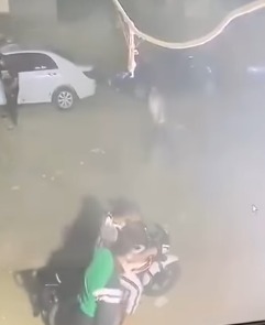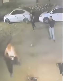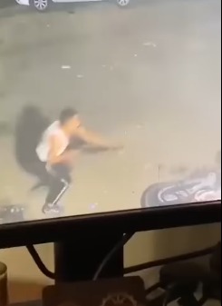 ويظهر في الفيديو شاب يحمل بندقية “خرطوش” ويقترب من شابين يستقلان دراجة نارية، وتحدث مشادة كلامية ثم يقوم بإطلاق النار عليهما من الخلف.