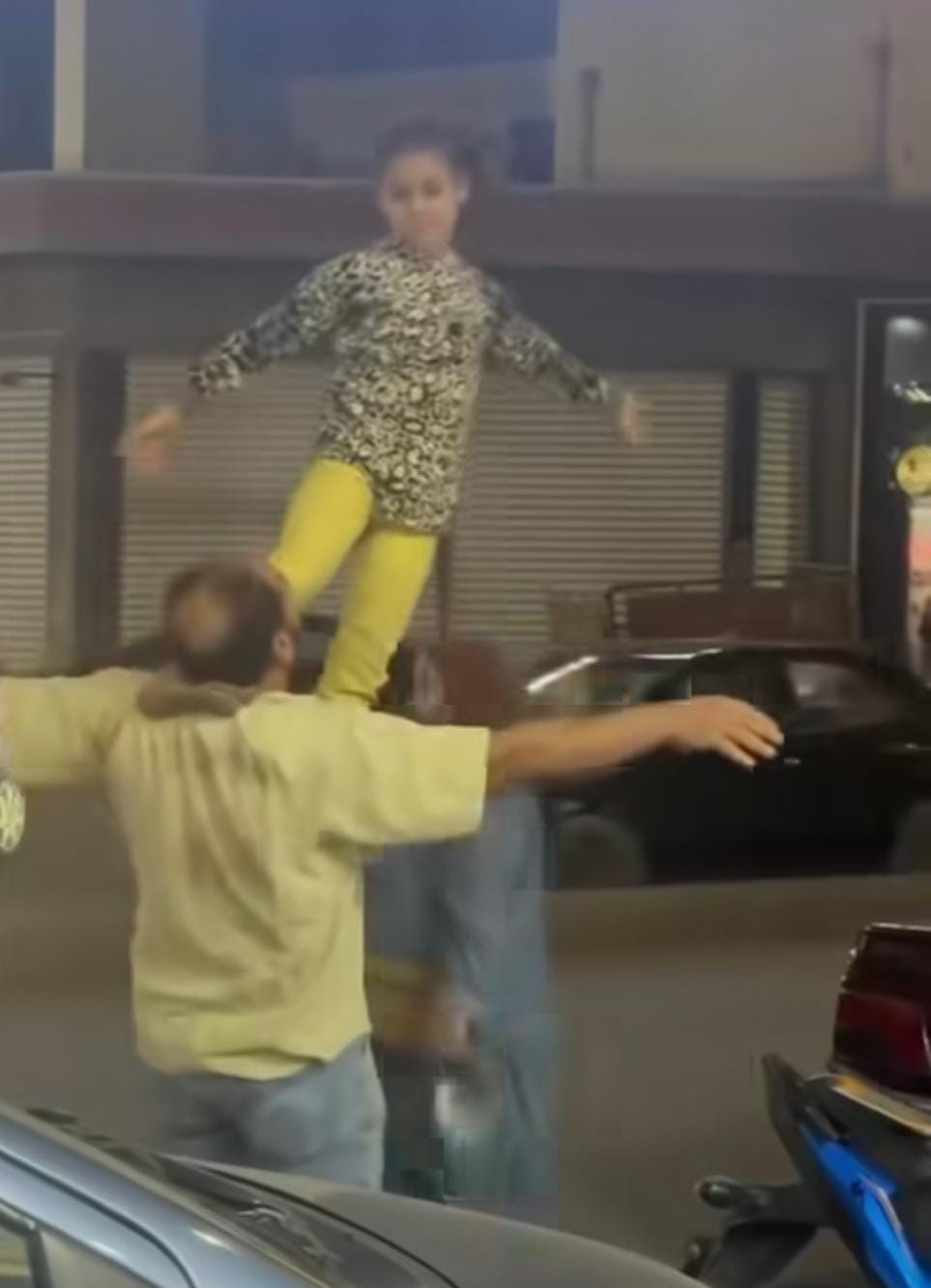 استعراض بين المقاهي، أب وابنته يؤديان حركات بهلوانية في الشارع (فيديو)