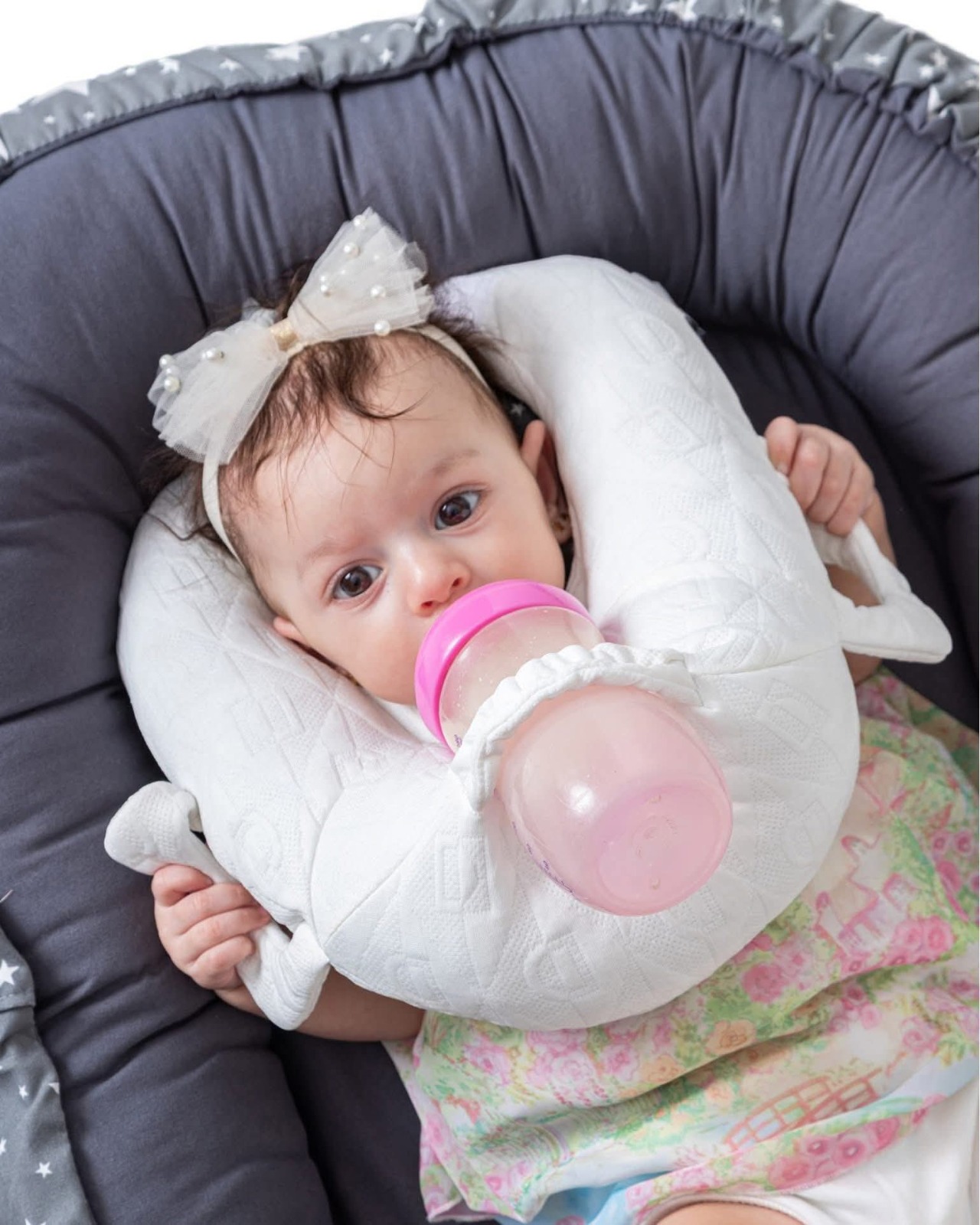 الأداة عبارة عن وسادة قطنية دائرية بفتحة رأس، يتم إدخال رأس الرضيع ليستند عليها، مزودة بمقبضين يتشبث بهما الطفل أثناء تلقيه قنينة اللبن، وفي المنتصف تثبت القنينة وتوضع في فم الطفل، ليتلقى منها غذاءه بشكل مباشر، دون تدخل من أحد.
