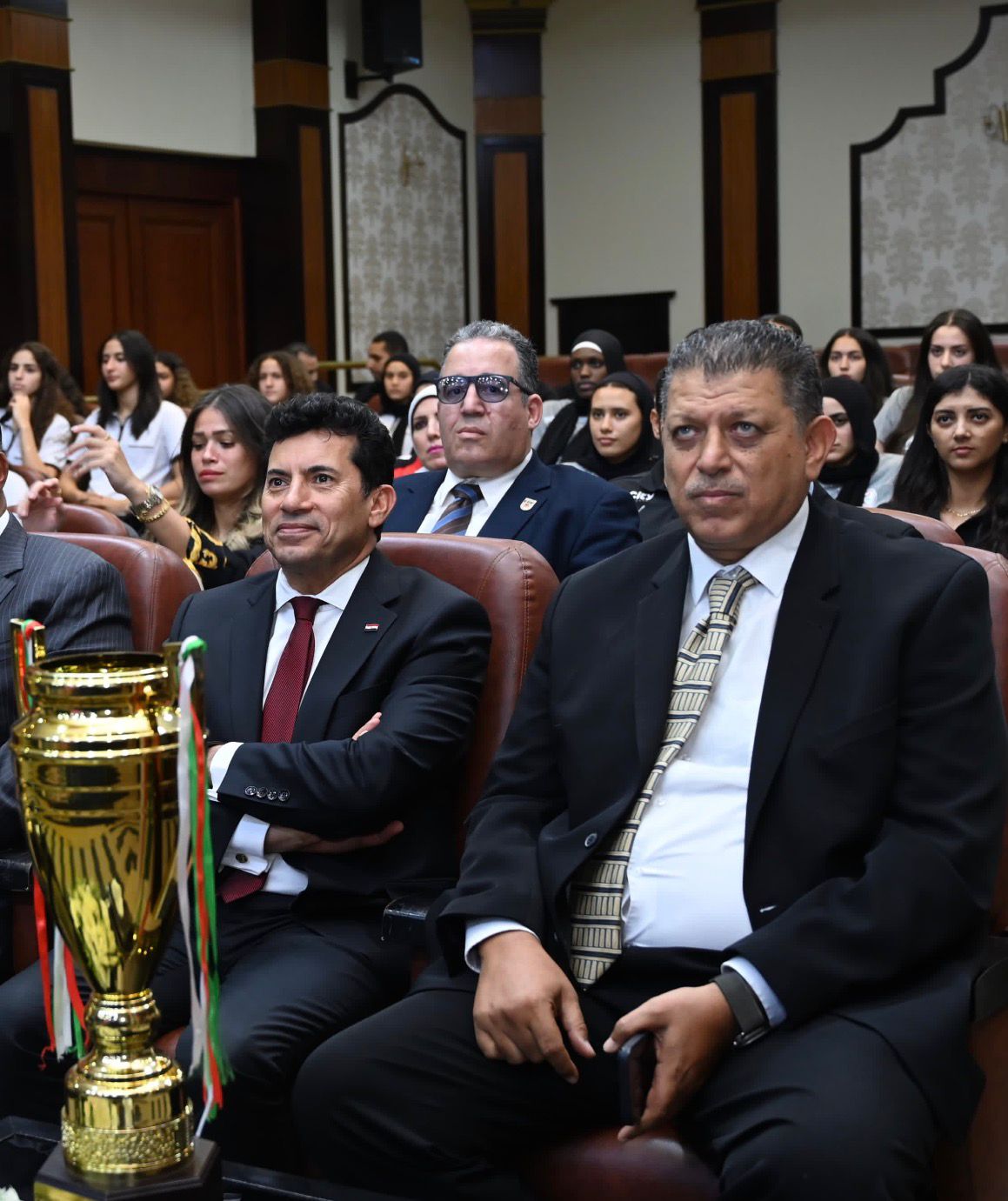 خلال اللقاء، يقوم الوزير أيضًا بتكريم منتخب الشابات لكرة اليد، بعد تتويجهن مؤخرًا بلقب بطولة أفريقيا، تقديرًا للإنجاز الكبير الذي حققنه والمستوى المشرف الذي ظهرن به طوال مشوار البطولة.