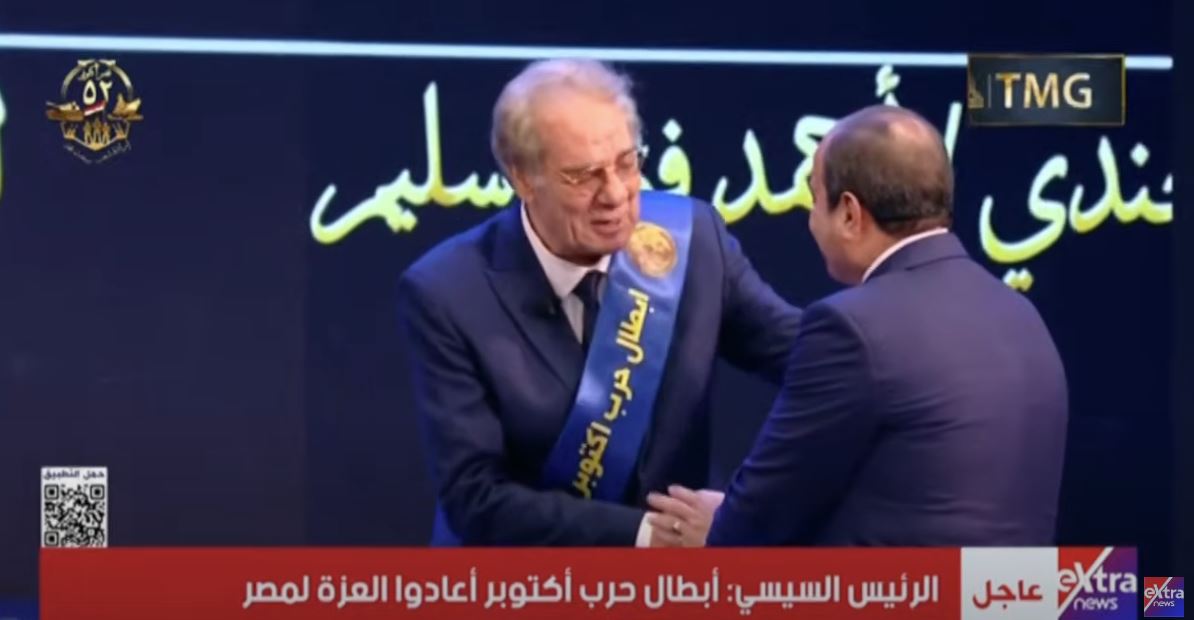 وحرص الرئيس السيسي على مصافحة الفنان أحمد فؤاد سليم وتكريمه، باعتباره أحد أبطال حرب أكتوبر 1973 الذين شاركوا في تحرير الأرض.