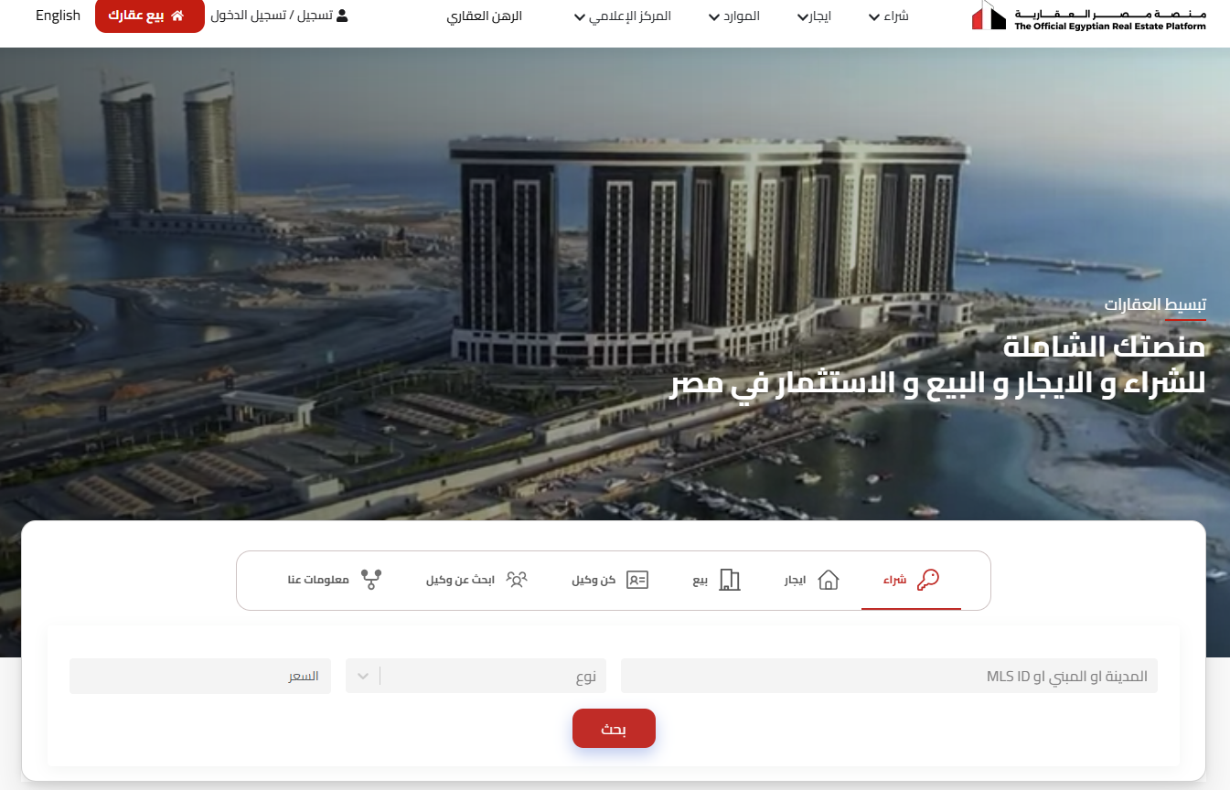 - الدخول على الموقع الرسمي لمنصة مصر العقارية.