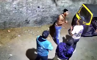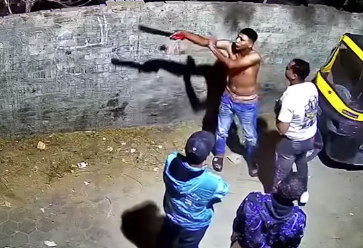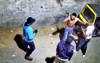 وظهر بالفيديو شاب ممسكًا بآلة حادة، خلال تهديده مواطنين بالشارع، ثم ظهر في مشهد آخر نازعًا جزءًا من ملابسه، أثناء تهديده شابًا بالآلة ذاتها.