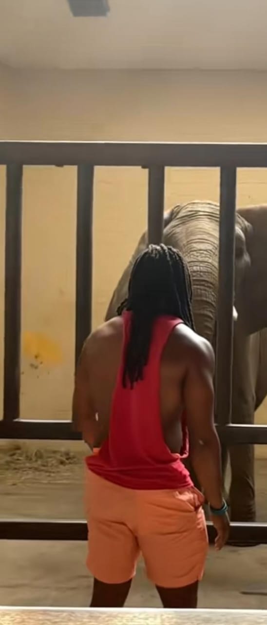 بدا على نوح عدم اكتراثه بما يفعل وتحرك نحو الفيل وقام بإزعاجه ليثور على الفور ويمد خرطومه إليه في محاولة للانقضاض عليه، لكنه سرعان ما ابتعد وقفز إلى مكان الزوار مرة أخرى وهو يمزح ضاحكًا مع أصدقائه.