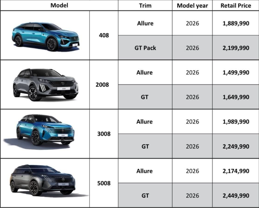 أسعار فئات طراز بيجو 3008 موديل 2026
