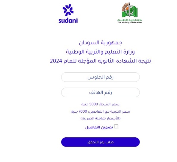 يستطيع جميع الطلاب الحصول على النتيجة عبر دفع 5000 جنيه سوداني، كما يرتفع السعر إلى 7000 جنيه لمن يرغب في الحصول على النتيجة مع كامل التفاصيل مثل النسبة المئوية والترتيب.