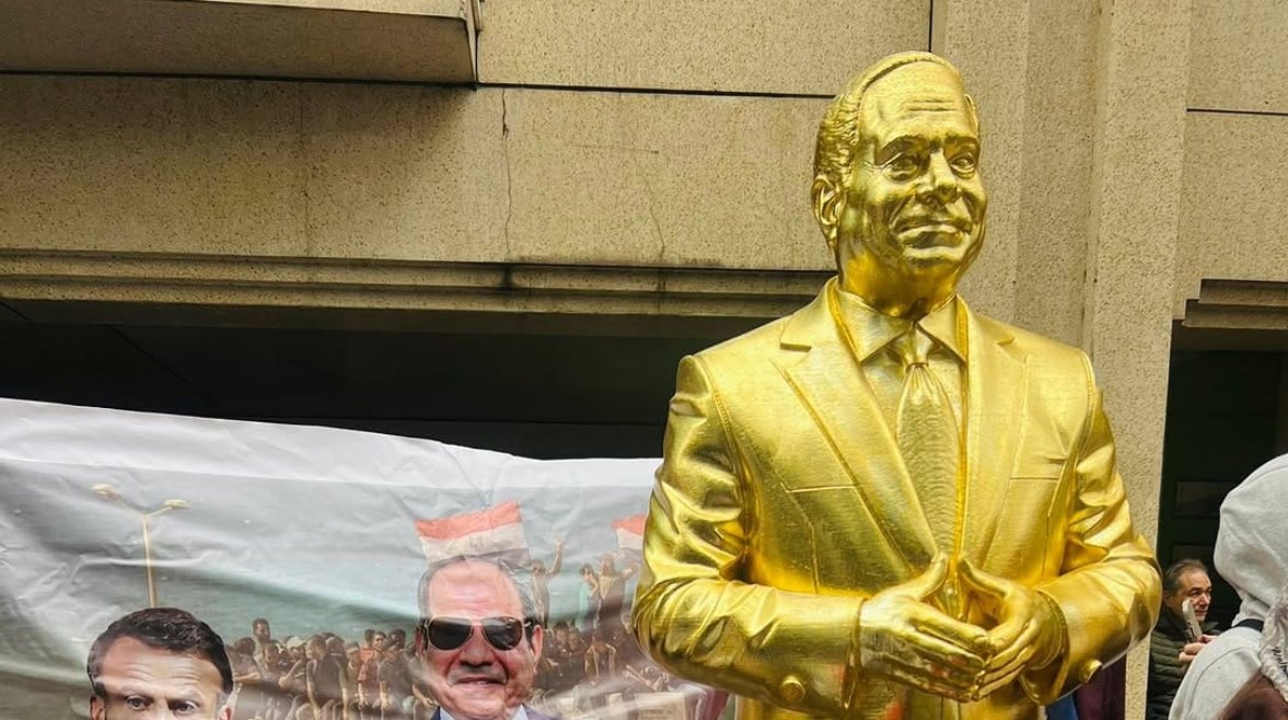 واستقبل اتحاد شباب مصر في الخارج، الرئيس السيسي، بتمثال ذهبي، حيث نشر نائب رئيس الاتحاد، أحمد ناصر الدبابة، عبر حسابه على انستجرام، صورا للتمثال، قائلًا: “اتحاد شباب مصر في الخارج يستقبل رئيس مصر البطل بتمثال ذهبي في قلب أوروبا تقديرًا ومحبةً من شباب مصر للرئيس السيسي بطل السلام”.