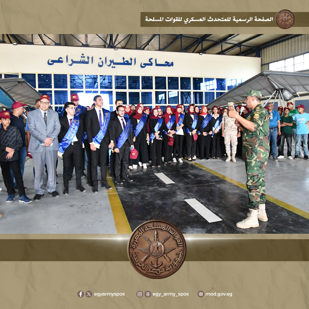 نظمت قوات الدفاع الشعبي والعسكري زيارة لطلبة جامعة الإسكندرية وعدد من طلائع مصر من وزارة الشباب والرياضة إلى قيادة قوات المظلات.