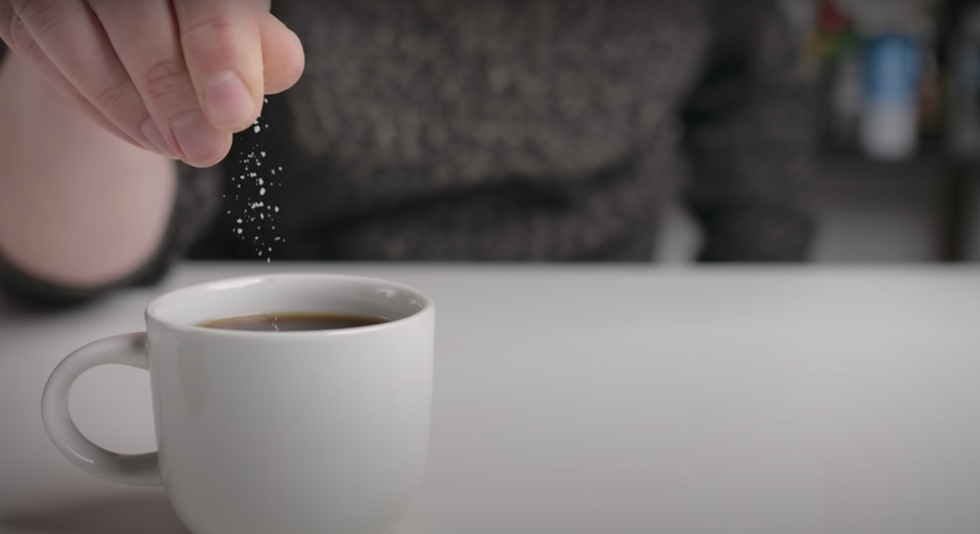 ووفقًا للموقع الصحي Preventive Medicine Daily، فإن الدراسة التي نشرت خلال العام الماضي، أثبت أن عنصر الصوديوم في الملح يمتلك قدرة على تعطيل مستقبلات المرارة، كمستقبل TAS2R16، ما يكسب القهوة نعومة في المذاق وتوازنًا بين النكهتين المالحة والحلوة.