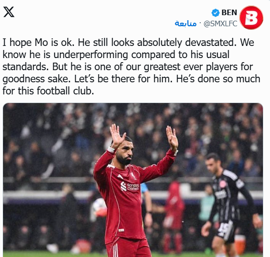 وجاءت هذه الخطوة بعد ساعات من مباراة ليفربول أمام آينتراخت فرانكفورت في دوري أبطال أوروبا، والتي شارك فيها صلاح كبديل لمدة لم تتجاوز 20 دقيقة، في قرار أثار تساؤلات الجماهير حول مستقبله مع الفريق.