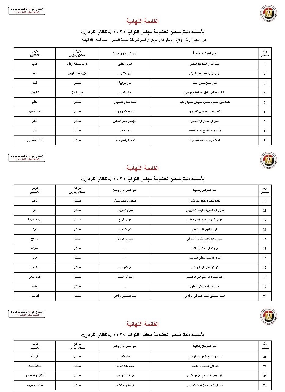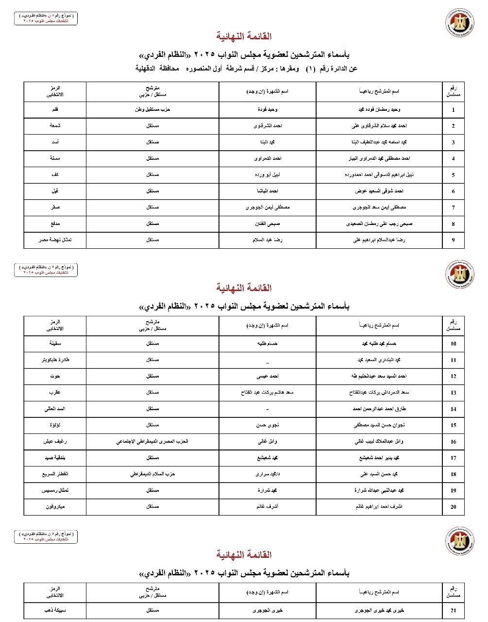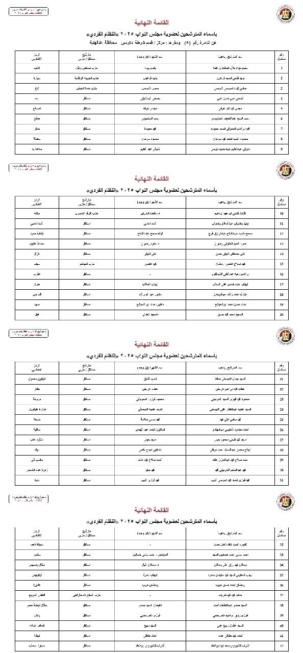 القوائم النهائية لمرشحي انتخابات مجلس النواب 2025 بالدقهلية