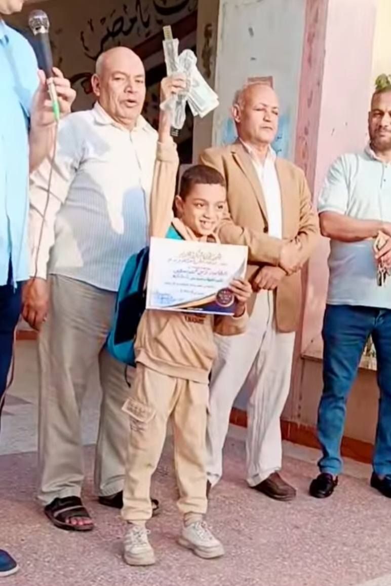 تداول رواد مواقع التواصل الاجتماعي، صورة زين من تكريمه في مدرسته ببني سويف، وسط إشادات بتربيته الحسنة وأمانته.