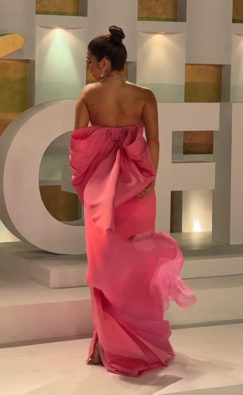 ولفتت الفنانة مايان السيد الانتباه على السجادة الحمراء قبل بداية حفل ختام المهرجان، وارتدت فستانا باللون الفوشيا مصحوبًا بـ "فيونكة" مميزة".