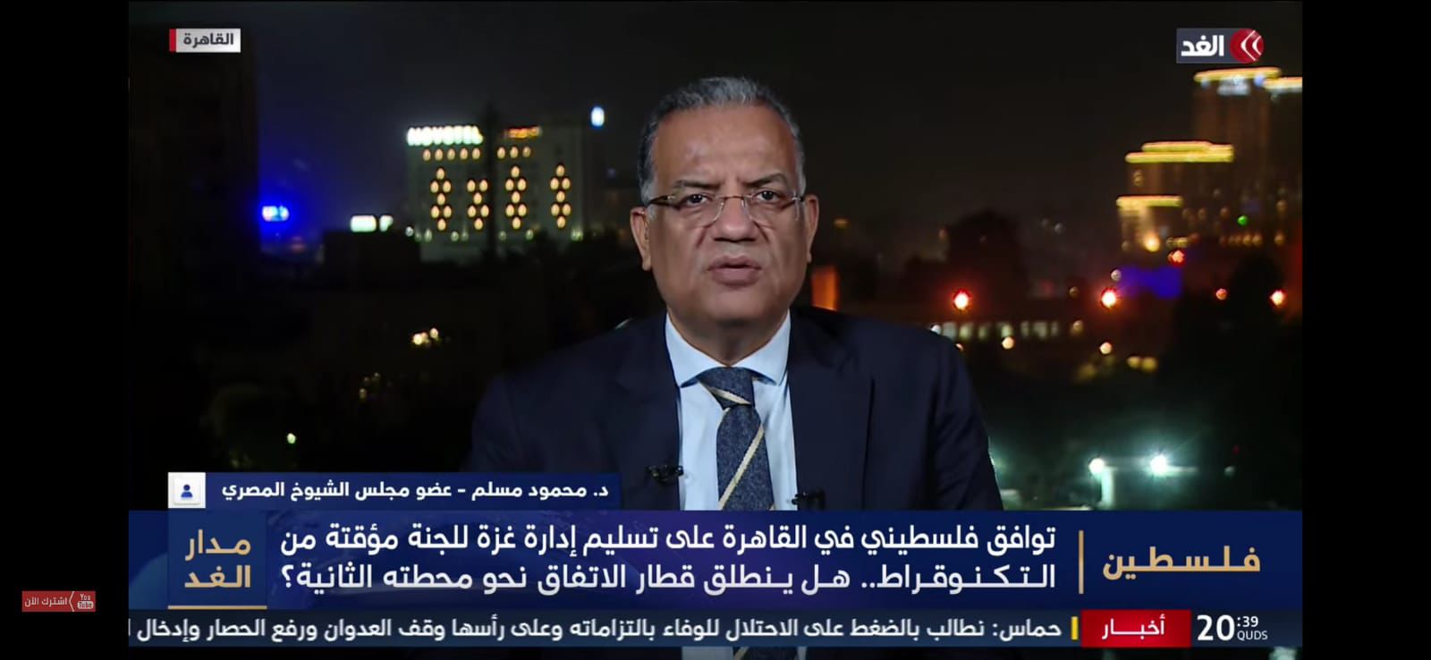 وتابع مسلم: “منذ اليوم الأول للحرب على غزة، منذ أكثر من عامين، و مصر بقيادة الرئيس عبدالفتاح السيسي استطاعت إجهاض مشروع التهجير، وقامت بدور مهم في إنفاذ المساعدات بقدر الإمكان من عبر رفح، وحرصت على الوئام الفلسطيني الفلسطيني”.