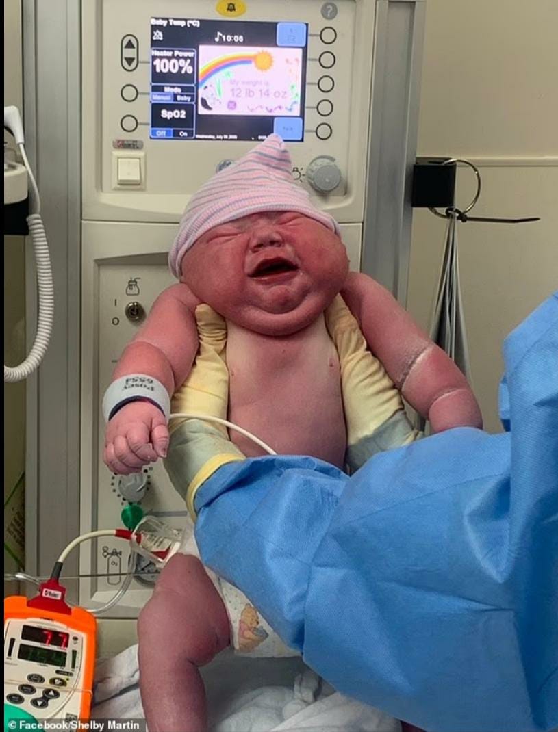 شيلبي، وهي أم لثلاثة أطفال قبل مولودها الجديد كاسيان، أوضحت أن الأطباء أبلغوها بأن الطفل سيكون كبير الحجم، لكنها لم تتخيل أبدًا أن يصل وزنه إلى هذا الحد.
