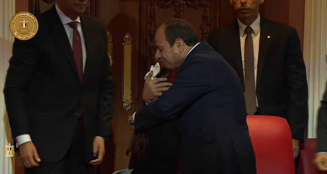 لفتة إنسانية تجمع السيسي وطفلة فلسطينية خلال حفل "وطن السلام"