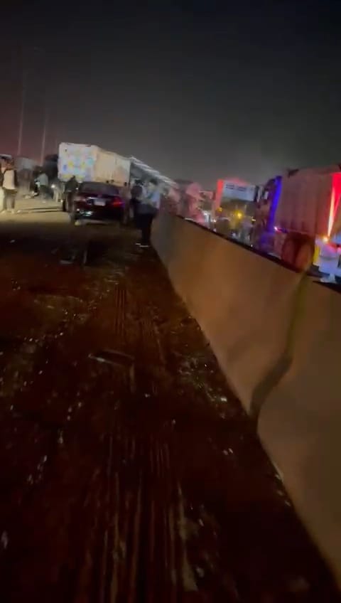 تصادم 3 تريلات و5 سيارات وأتوبيسين على طريق السويس