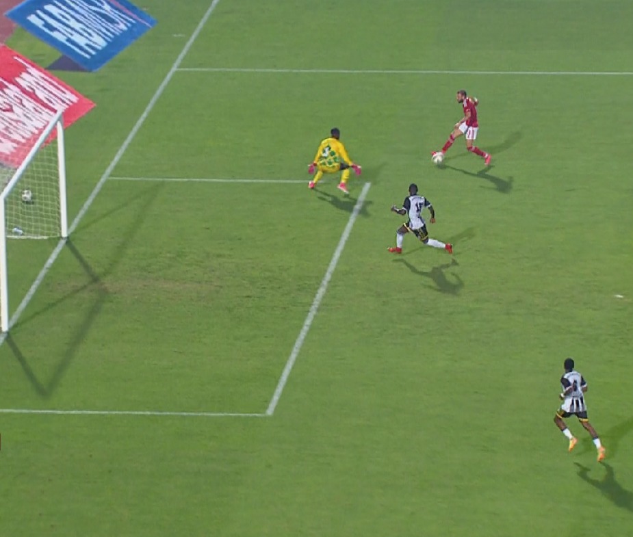 الدقيقة 65: رأسية من طاهر محمد طاهر، لاعب الأهلي، بعد عرضية من عمر كمال، من الجهة اليمنى ولكنها علت مرمى حارس إيجل نوار.