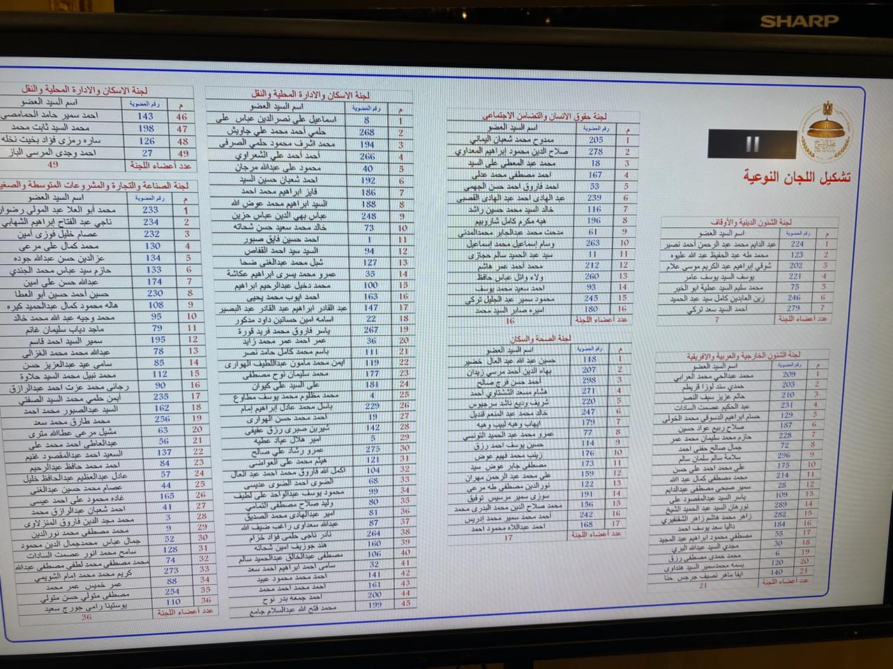 - يعلن رئيس المجلس نتيجة انتخابات مكاتب اللجان النوعية للمجلس.