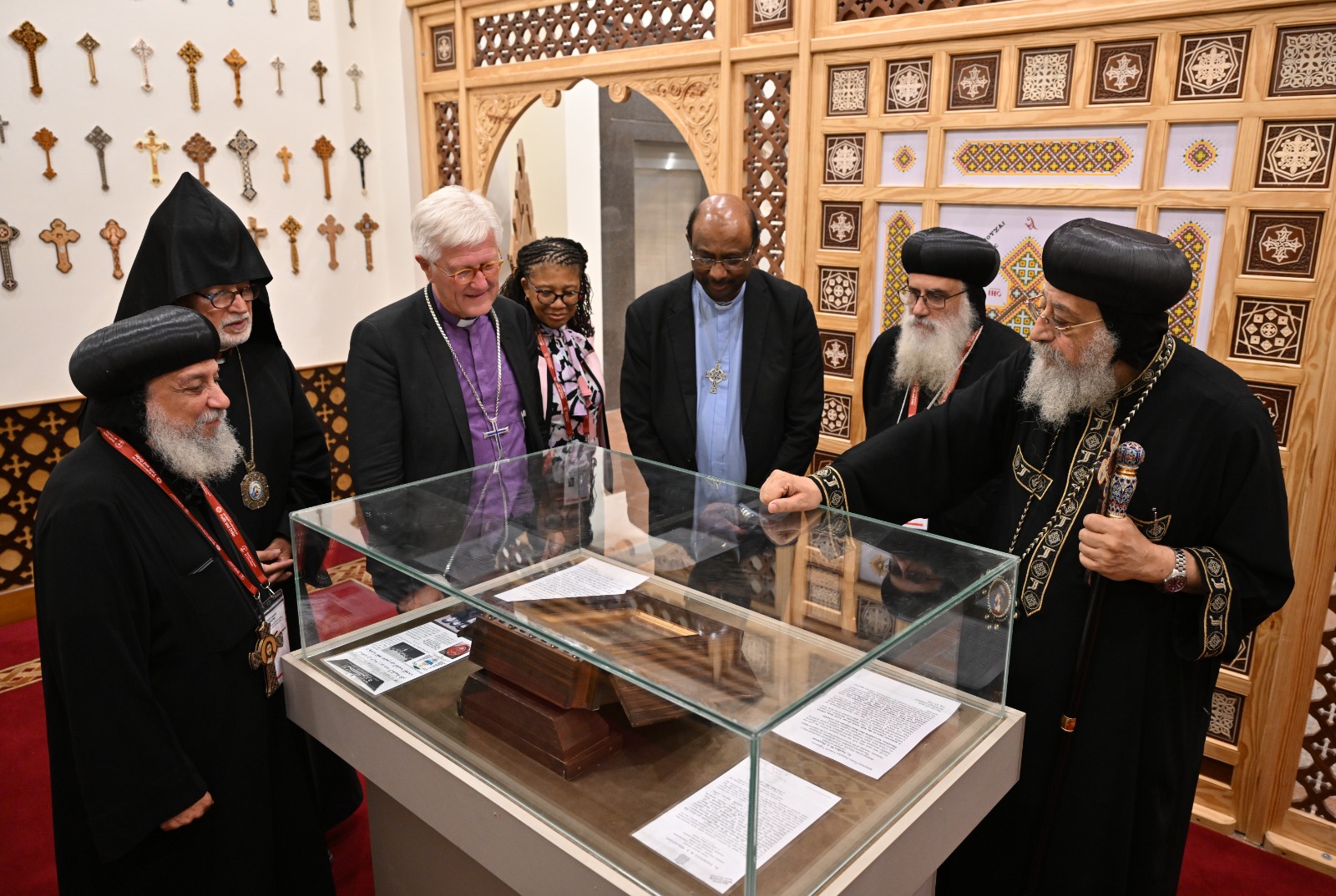 بعد اللقاء، اصطحب قداسة البابا الوفد في زيارة إلى المكان الذي يُحتفظ فيه بجزء من خشبة الصليب المقدس بمركز لوجوس، وهو واحد من 13 جزءًا موجودًا في عدة أماكن حول العالم.