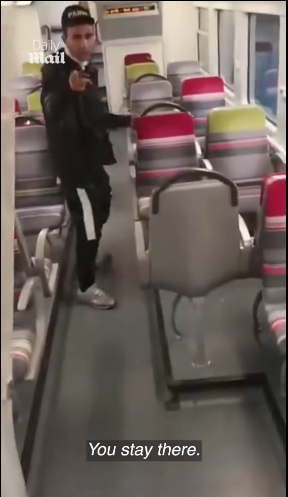 وانتبهت راكبة أخرى لصراخها، فأخرجت هاتفها لتصويره، وهي تقول: "ابقِ هناك" بينما يبدو أن الرجل بدأ يقترب منها، ثم يصل القطار إلى المحطة، فيهرب على طول الرصيف، وهو يرتدي بدلة رياضية سوداء وقبعة.