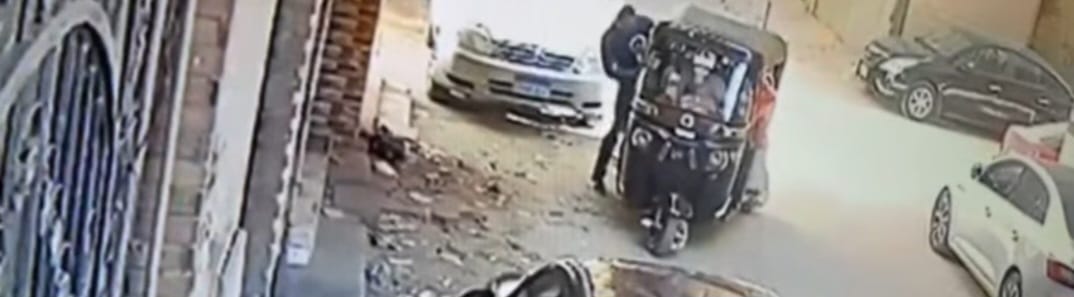 ويظهر في الفيديو المتهم يستقل توك توك وبرفقته الطفلين في حالة غياب تام عن الوعي ويقوم بإنزالهم واحد تلو الآخر وإلقاءهم في مدخل العقار، قبل أن يغادر على متن التوك توك.