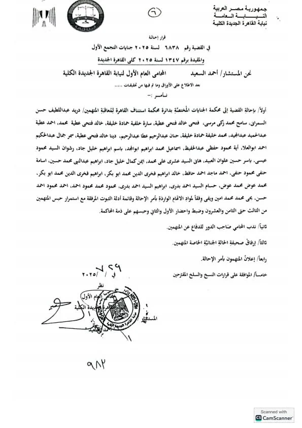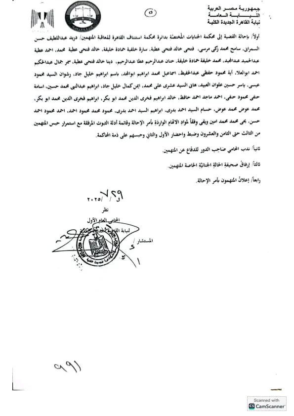 كما قررت النيابة ندب محامٍ من أصحاب الدور للدفاع عن المتهمين، وإرفاق صحيفة الحالة الجنائية الخاصة بكل منهم، إلى جانب إعلانهم رسميًا بأمر الإحالة.