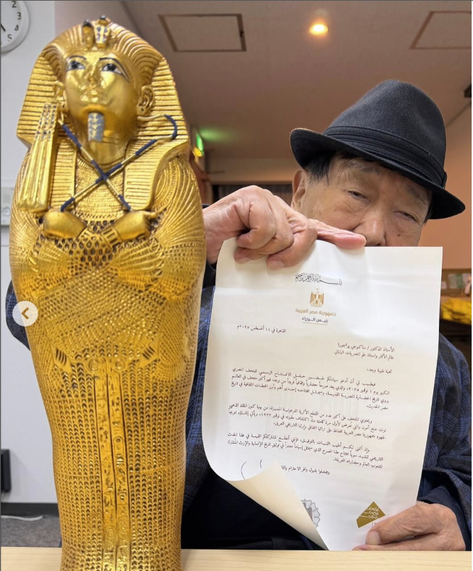 شارك عالم المصريات الياباني، ساكوجي يوشيمورا، لحظة تلقي دعوة حضور افتتاح المتحف المصري الكبير، المقرر أن تبدأ في الأول من نوفمبر عام 2025.