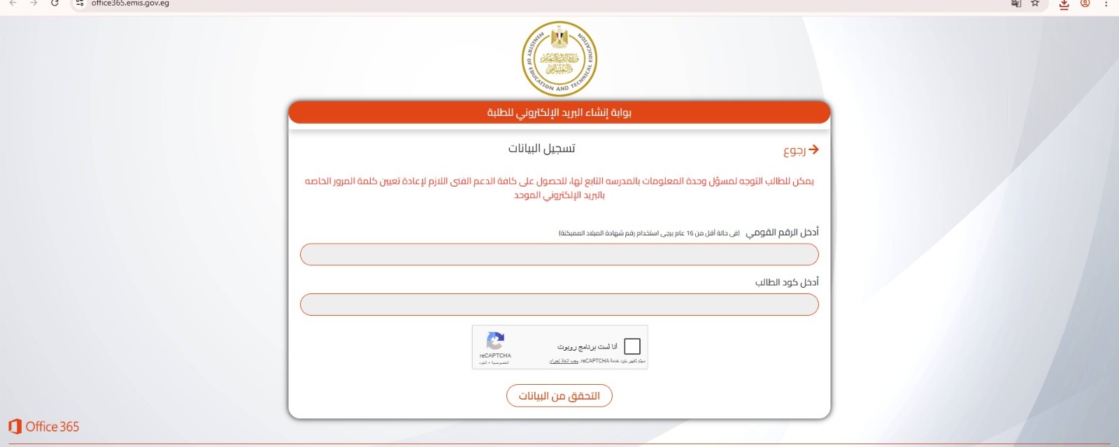 - الضغط على التحقق من البيانات.