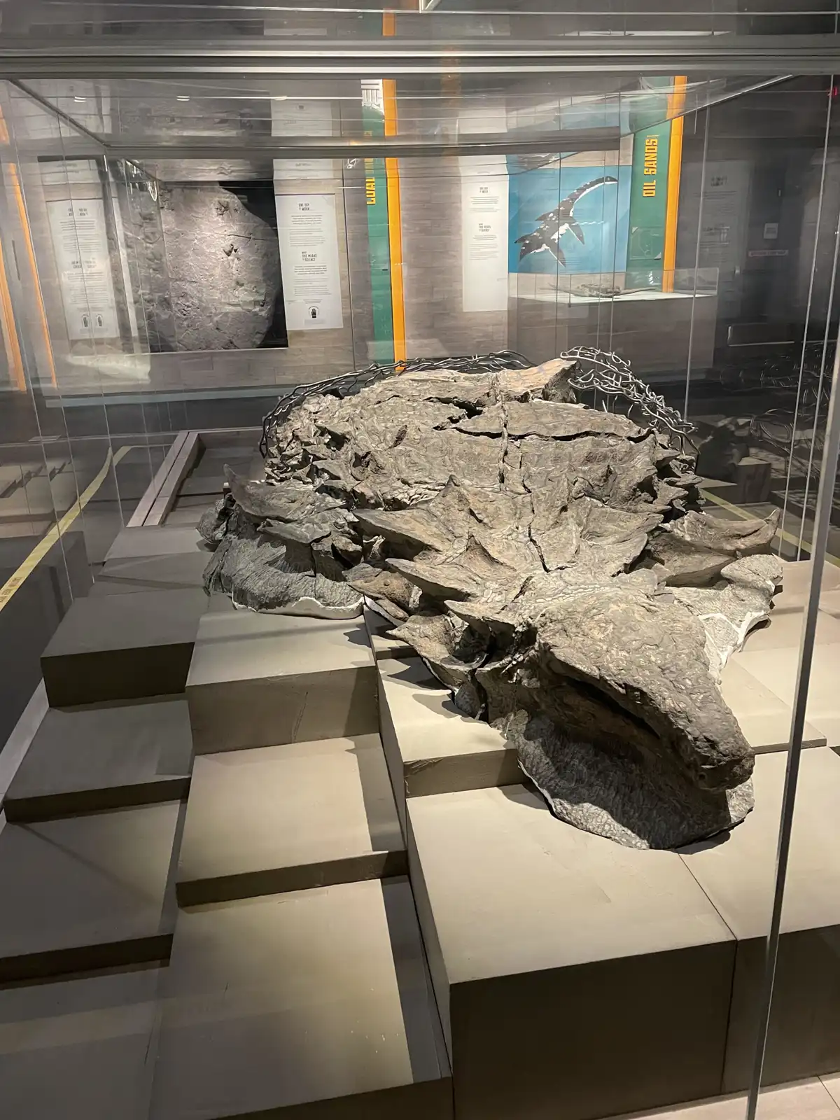 وهذا الاكتشاف معروض الآن في متحف “تيريل” الملكي في ألبرتا بكندا، ويعد جزءًا من عائلة النودوصور، وهي مجموعة من الديناصورات الثقيلة المدرعة آكلة النباتات التي سكنت العصر الطباشيري.