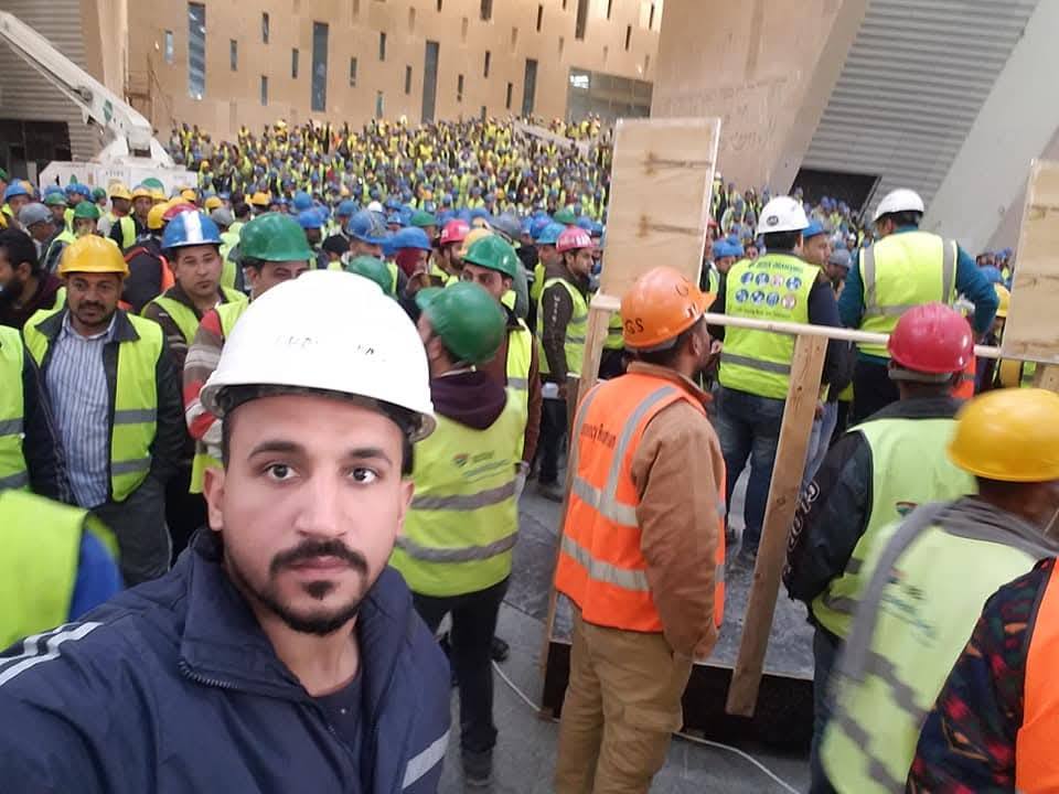 بحسب بطرس، بلغ عدد العمال في الموقع، نحو 5 آلاف عامل، وتنوعت وظائفهم بين الحدادة والنجارة والنقاشة، وأعمال الكهرباء والإنارة، والتركيبات والتشطيبات، وعمال المعدات الثقيلة.