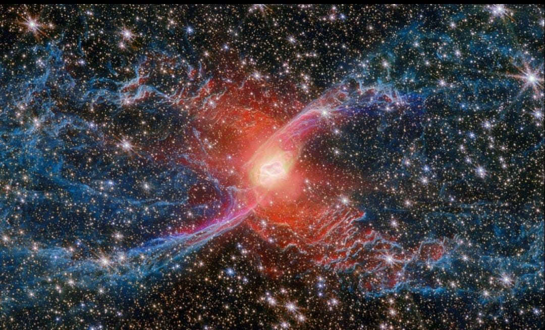 سديم العنكبوت الأحمر هو صورة التقطها تلسكوب جيمس ويب الفضائي باستخدام كاميرا الأشعة تحت الحمراء، لمجموعة رائعة من النجوم في الفضاء.