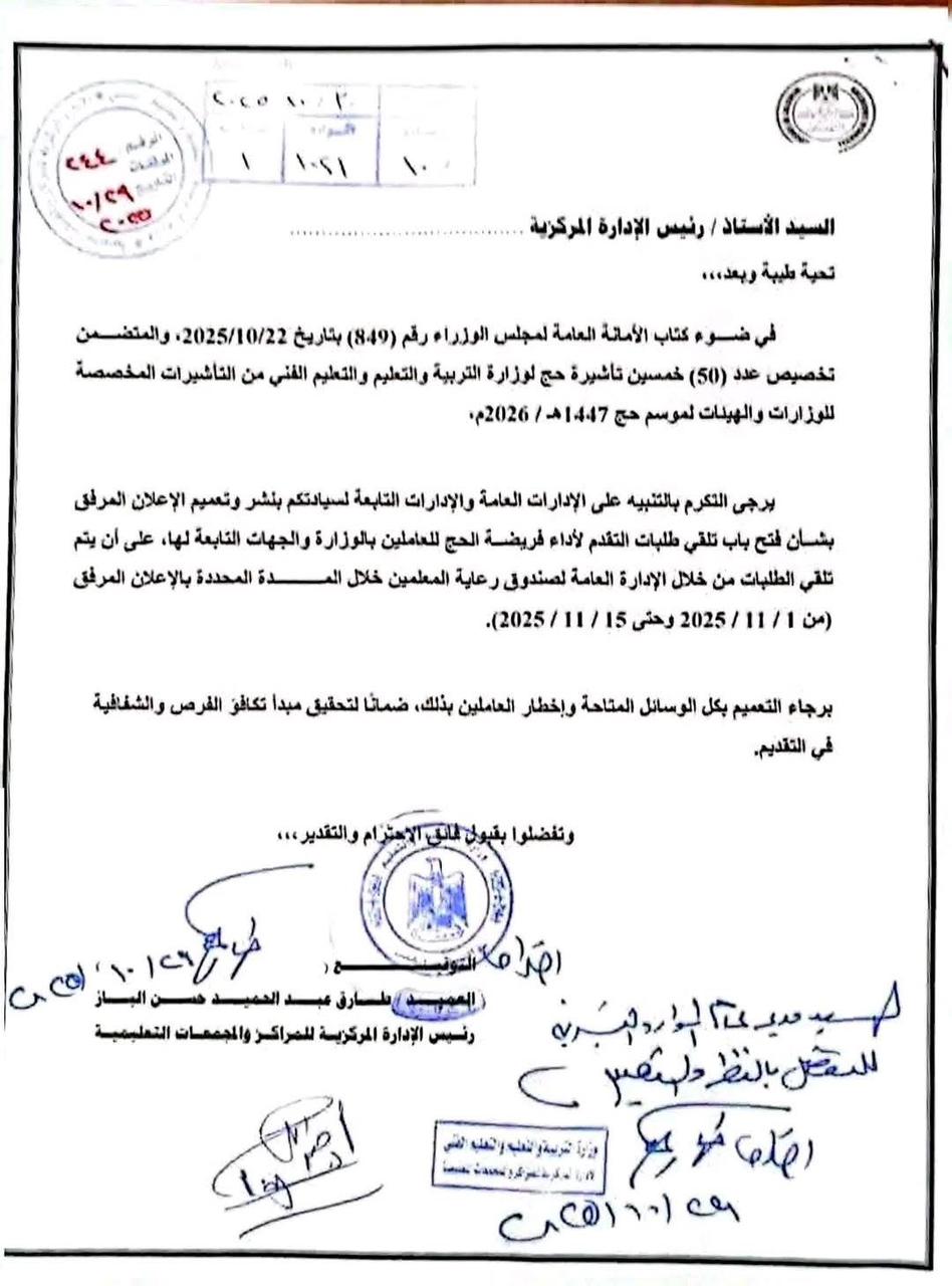 تأشيرات الحج بوزارة التعليم