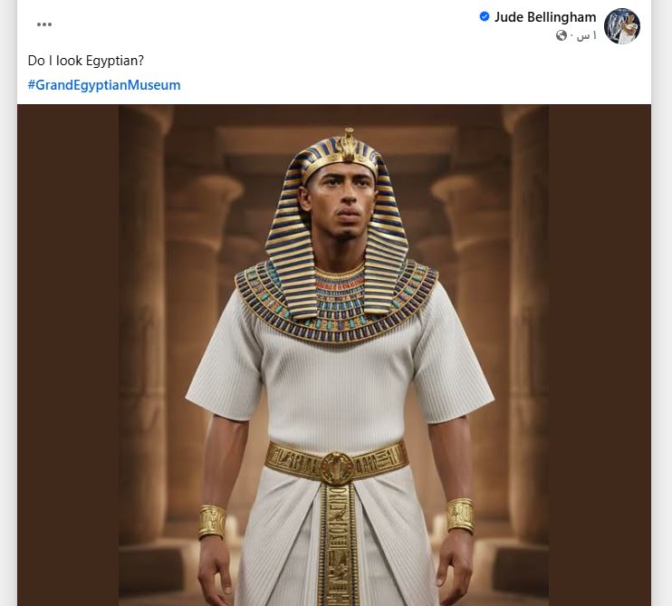 وشارك النجم العالمي جود بيلينجهام، لاعب ريال مدريد الإسباني، المصريين فرحتهم، حيث نشر صورته مرتديًا الزي الفرعوني عبر صفحته على منصة "فيسبوك"، معلقًا: “هل أشبه المصريين؟”.