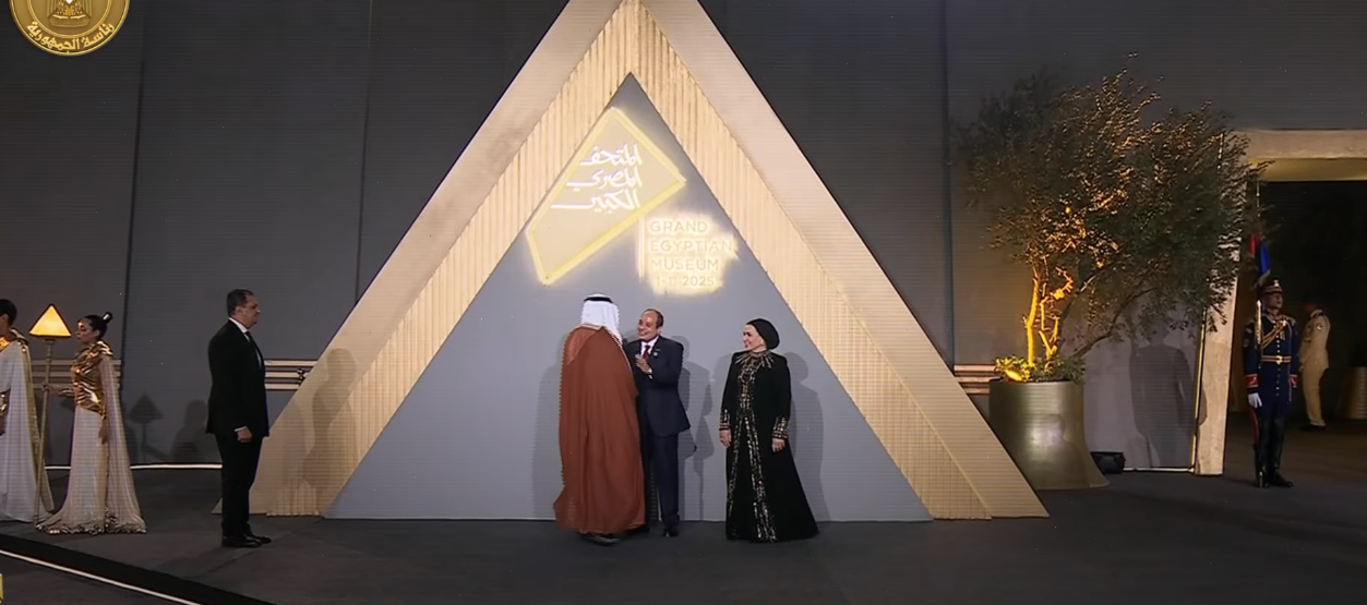 وانطلق حفل افتتاح المتحف المصري الكبير مساء اليوم السبت، الأول من نوفمبر، بحضور الرئيس عبدالفتاح السيسي، وعدد كبير من ملوك ورؤساء العالم، ومن المقرر أن يستمر الحفل لمدة لن تقل عن ساعة ونصف، وسيتم عقب الحفل افتتاح قاعتي توت عنخ آمون بالمتحف المصري الكبير.