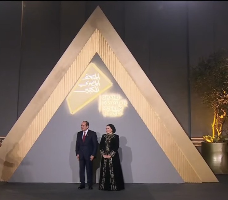 وصل الرئيس عبد الفتاح السيسي رفقة قرينته السيدة انتصار إلى مقر افتتاح المتحف المصري الكبير، لاستقبال ضيوف الحفل، وسط إشادات واسعة من مستخدمي مواقع التواصل الاجتماعي بإطلالتها.