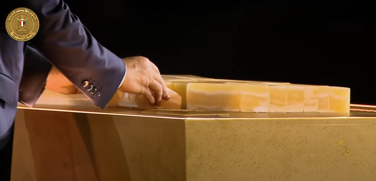 وقام الرئيس عبد الفتاح السيسي بوضع القطعة الأخيرة التي تمثل مصر، ليعلن رسميًا افتتاح المتحف المصري الكبير، إيذانًا ببدء مرحلة جديدة من عرض الحضارة المصرية للعالم.