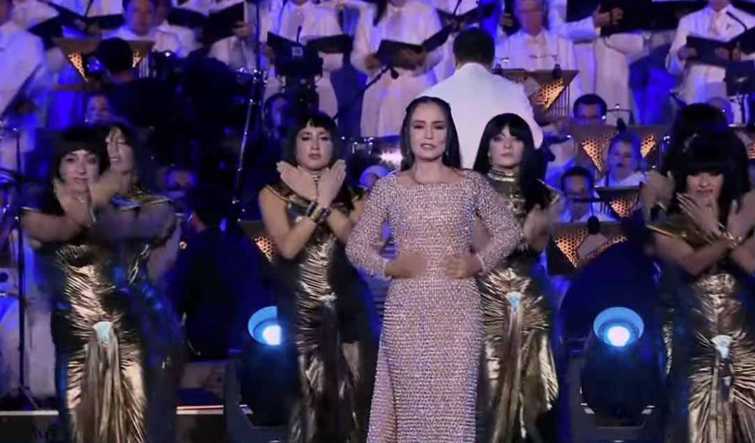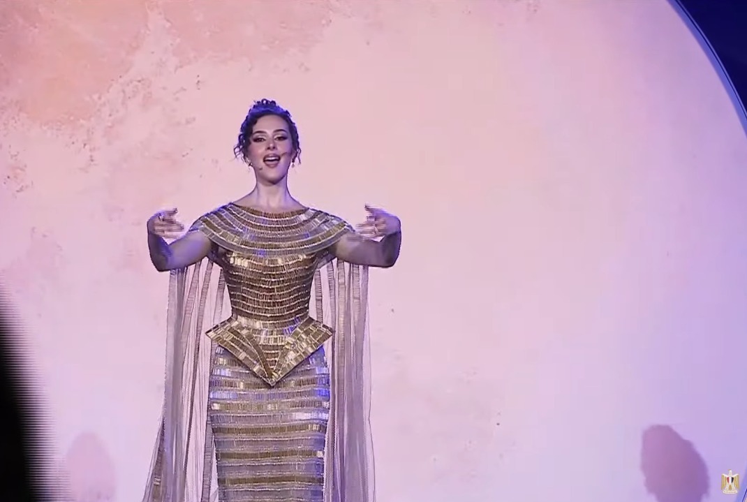 بنقوشات فرعونية، إشادات بإطلالة انتصار السيسي في حفل افتتاح المتحف المصري الكبير