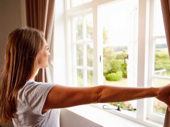 فتح النوافذ في الصباح الباكر لمدة نصف ساعة على الأقل خطوة أساسية لتجديد الهواء، فالهواء الراكد يثقل المزاج، بينما نسيم الصباح النقي يجدد النشاط، كما أن دخول أشعة الشمس للمنزل يعد مطهرًا طبيعيًا للطاقة، يبعث الدفء والحياة في المكان.