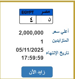 "ن 4"، لوحة مرور تبدأ بـ 2 مليون جنيه فى مزاد علني