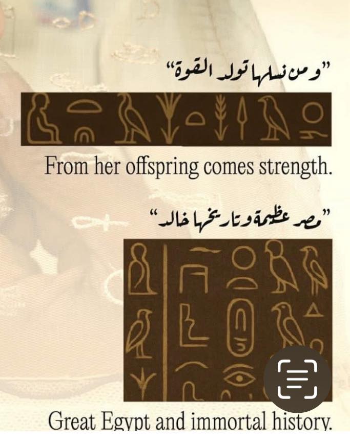 "ينحني الزمن أمام مجد مصر"، معاني العبارات الهيروغليفية على فستان انتصار السيسي