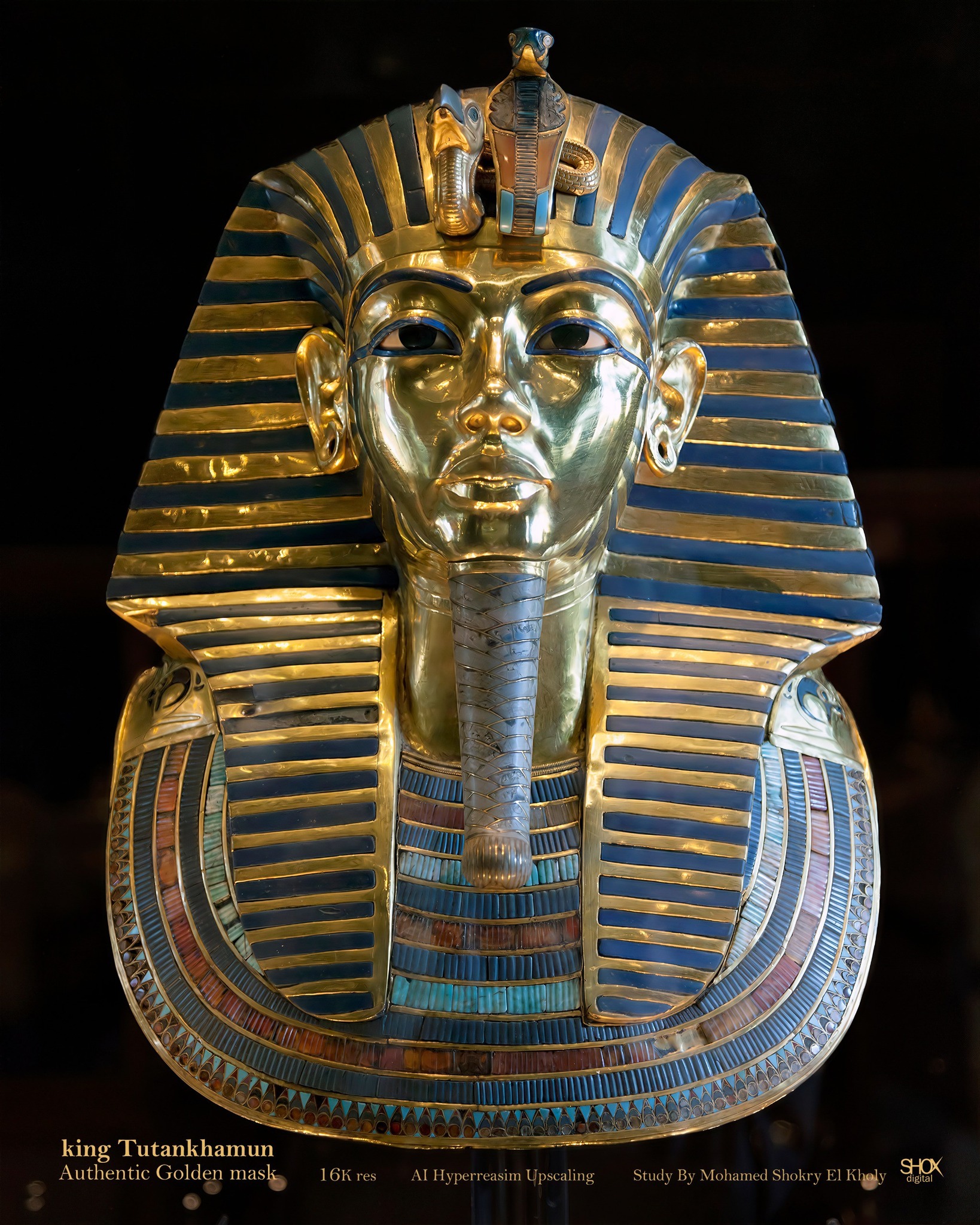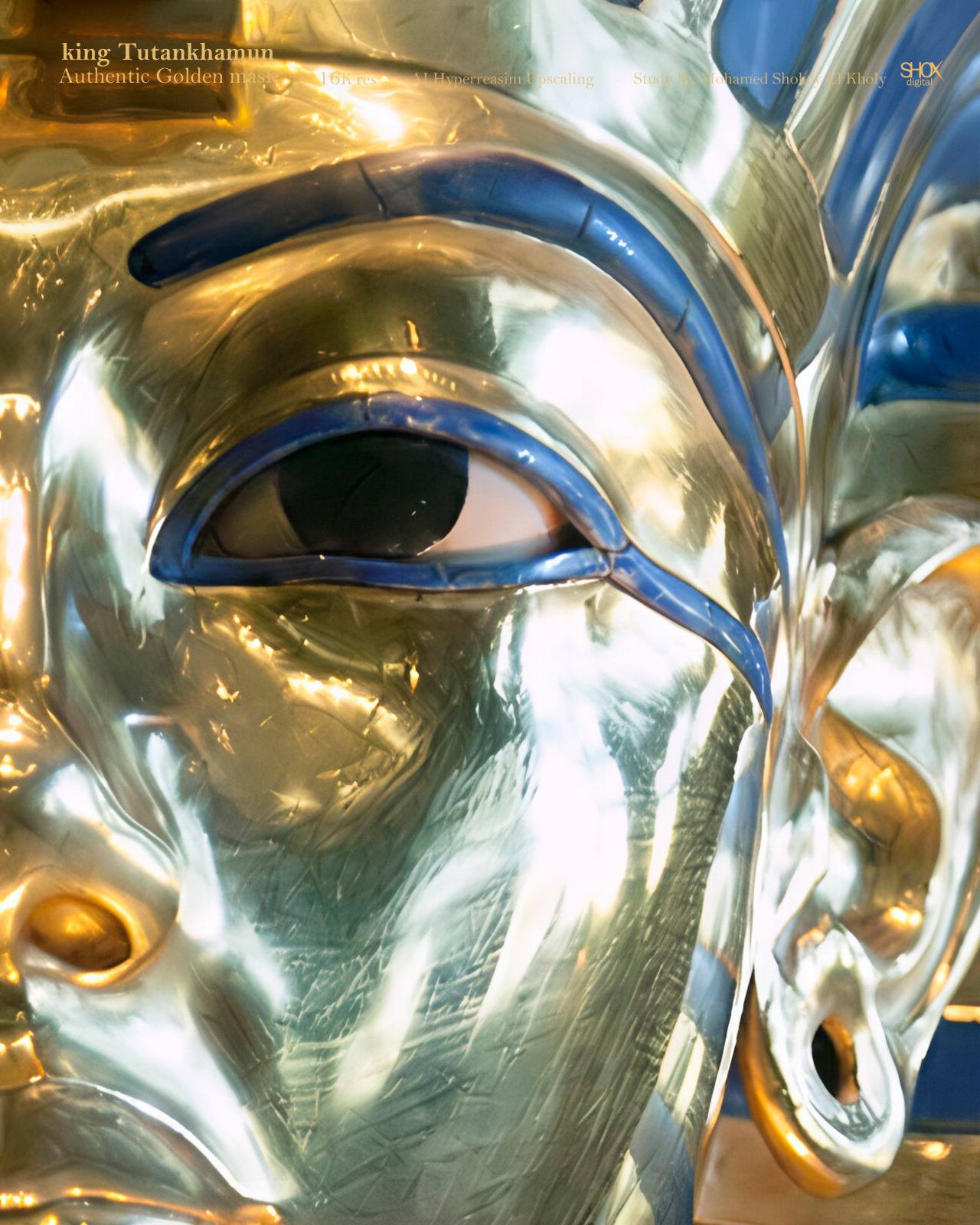وبدأ فصح القناع وتكبير ملامحه بالذكاء الاصطناعي المتطور بجودة عالية الدقة "16K"، فاستطاع الذكاء الاصطناعي التغلب على انعكاسات الضوء التي تعيق ظهور كل الملامح بوضوح، كما أكمل التفاصيل المفقودة لملامح الوجه بالعين المجردة، وكانت النتيجه ظهور أسرار خفية في ملامح وجه الملك لا تعرف من قبل.